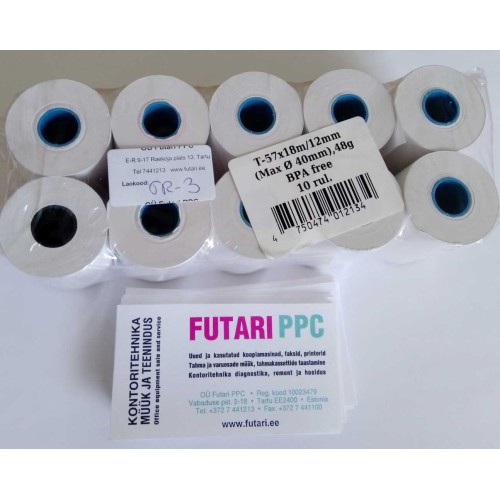Termo paberi rull 37 mm (laius) x 30 m (pikkus). Kasulik 14-pakk. Rulli väline diameeter max 50 mm. ..